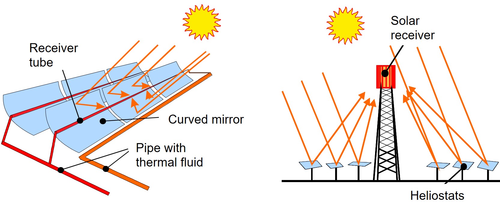 • The conversion of solar energy into heat requires approximately 2.5 to 3 times smaller solar-irradiated surfaces and can thus become significantly more cost-effective.