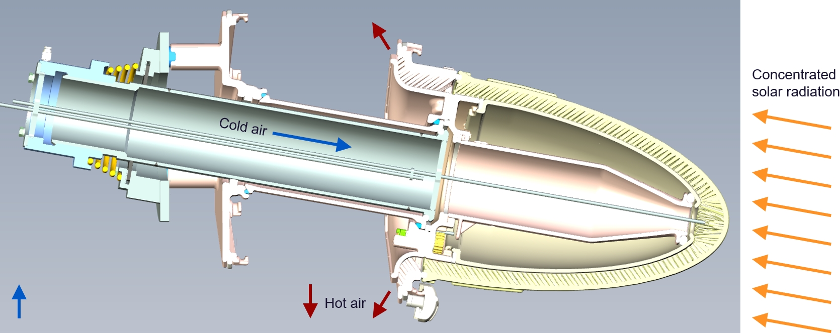 The HSE receiver uses the following technical-physical principles for the best possible heat transfer from concentrated solar radiation to the air flowing inside: