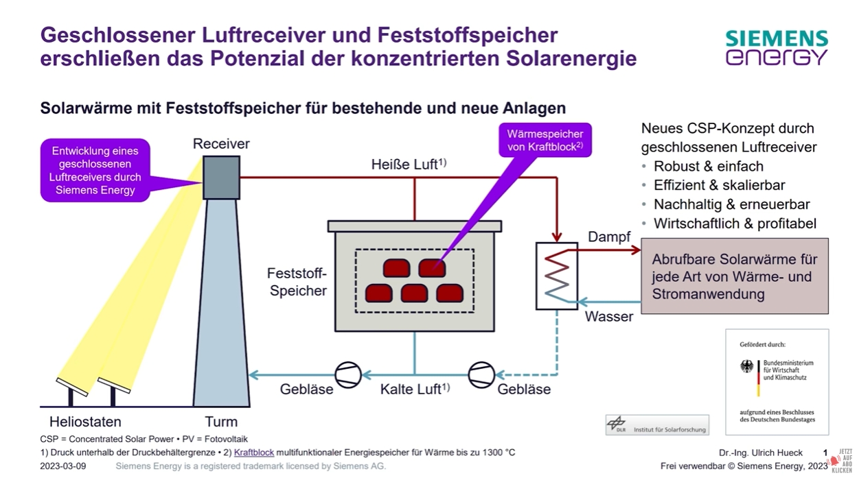 Customer presentation “Solar Thermal Energy and Storage solution” by Dr. Ulrich Hueck for Siemens Energy in South Africa.