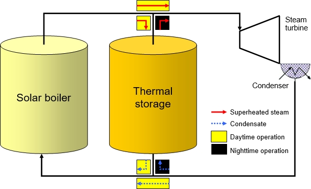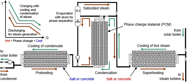 The work includes an overview and a qualitative assessment of all technological approaches relevant at the time for the configuration of solar thermal power plants. However, the subsequent approach favored in the work, direct steam generation with a “solar boiler” in a solar tower plant, and the associated heat storage with salt as “Phase Change Material” (PCM), are obsolete, as they are neither technically scalable nor economically viable. These findings have been incorporated into further work for the development of a competitive CSP configuration.