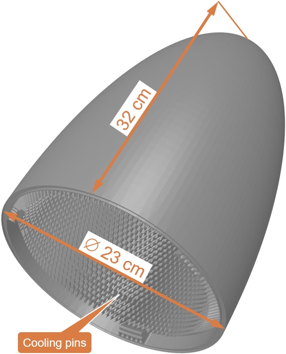 Eine einzelne Receiver-Kappe hat eine Höhe von ca. 32 cm und einen Durchmesser von 23 cm, damit sie im 3D-Druck herstellbar ist.