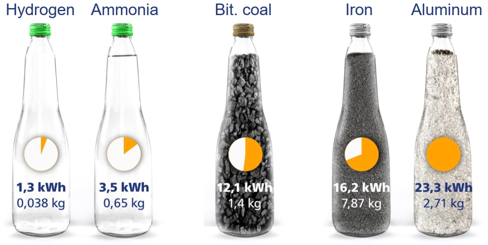 Wasserstoff bei 700 bar, Ammoniak bei -34°C. Quelle: Metal Energy Hub
